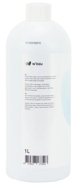 W’eau Clear Water zet troebel water snel om in zuiver en helder spa water. Het is een kant-en-klare vloeibare oplossing waarmee je vuil neutraliseert en verwijdert. Gebruik het voor zeepresten, olie en andere kleine vuildeeltjes. Regelmatig gebruik zorgt voor een kristalheldere spa met gezond water. Wij adviseren het 1 keer per week te gebruiken voor het beste resultaat.